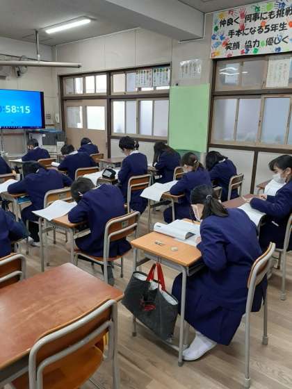 今日は漢字検定がありました。個人のレベルに合った級を選び、今日まで学習してきたことや、普段の漢字の学習で身につけた力を発揮する大切な検定です。