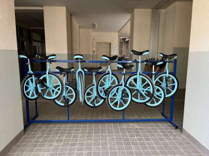 一輪車ラックも買っていただきました。休み時間はラックからすべての一輪車がなくなるほど大人気です。