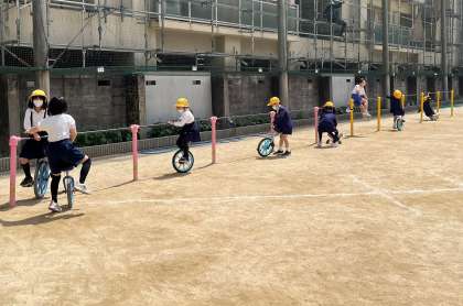 休み時間は一輪車が大流行で、子どもたちが一生懸命練習している姿がたくさん見られます。