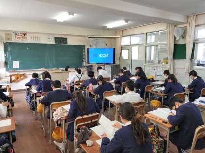 本日の1・2時間目に全国学力・学習状況調査がありました。普段学習していることを発揮できるよい機会です。調査結果は後日配布致します。