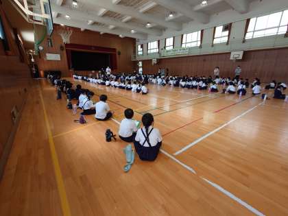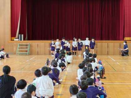 5月11日(木)2年生は、1年生と一緒に学校探検をしました。1年生とグループを作って、学校のいろいろな部屋の説明をしました。仲良く一緒に校舎を回ることができていました。