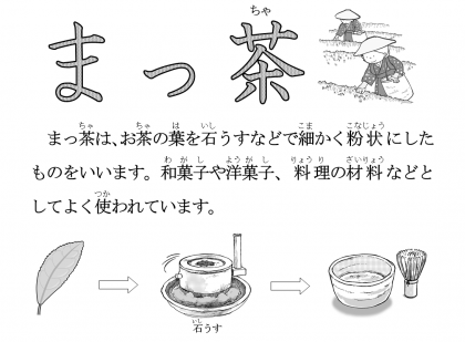 新茶の季節に合わせて【まっ茶ういろう】にしました。 上新粉 抹茶 砂糖 水をよく混ぜ合わせミニバットに入れて蒸して作ります。(教室で切り分けて配膳します。)