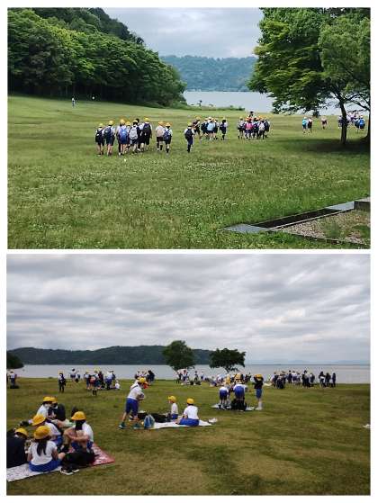 お弁当を受け取って、湖畔のところでいただきま〜す♪