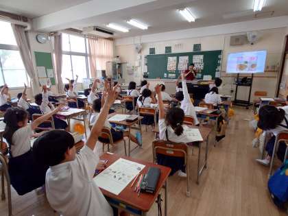 6月1日(木)2年生は栄養指導がありました。普段食べている物の色別にグループ分けをしたり、それぞれの色が体にどんな働きなのかを学習しました。子どもたちは、一生懸命話を聞いて、楽しそうに活動することができていました。