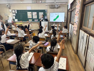 2.3時間目に各クラス栄養指導がありました。子どもたちの嫌いな食べ物をたくさん出し、それがとても栄養があることを教えてもらいました。赤黄緑の服を着たくまが出てくる紙芝居もあり、楽しみながら学習することができました。最後にこれからがんばることをワークシートに書いたので、何を書いたかお家でも聞いてみてください!