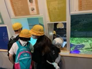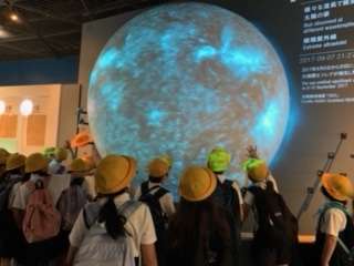 グループごとに見学がスタートしました。まずは4階で宇宙についての展示を興味津々で楽しんでいます。
