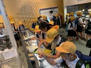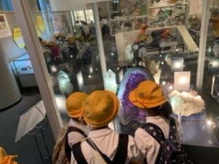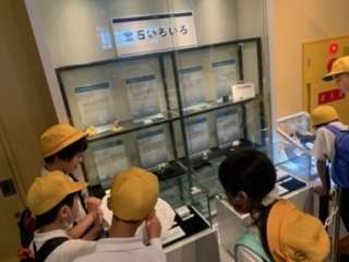 3階では、鉱物や金属の加工などの展示を楽しんでいます。きれいな宝石に釘付けでした。