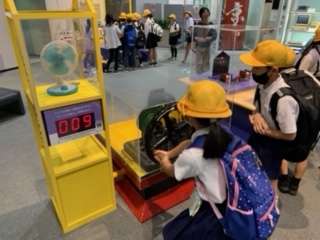 1階では電気がどこから送られてくるのか勉強しています。手回しやジョギングでたくさん発電しています。