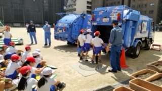4年が、パッカー車体験を行いました。実際にパッカー車にごみを投げ入れたり、乗車させてもらったりと、近くで体験することができました。