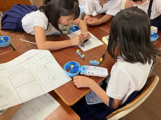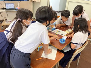 4年理科では「電気のはたらき」を学習しています。乾電池とモーターの回る向きを簡易検流計を使ってしらべました。また、乾電池のつなぎ方を直列つなぎや並列つなぎにして電流の大きさも調べました。班活動で協力して実験ができました。結果から考えをまとめていきました。実験で使ったキットは、最後にハンディーファンを組み立てて家に持ってかえります。