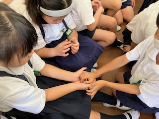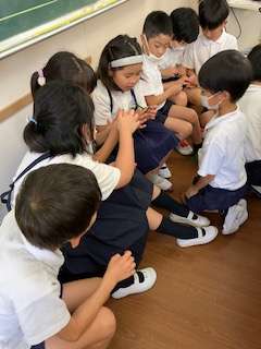 3年理科では、昆虫のからだのつくりを学習しました。三国本町公園で採取した昆虫を優しく触って観察しました。虫が苦手な子たちは、触るのが平気なお友だちにつかんでもらって観察しました。観察を通して、昆虫のからだの不思議に興味を持ちました。