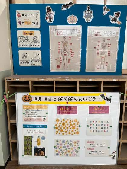 保健室前の掲示板に目のトレーニングになるゲームを掲示しています。