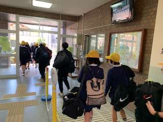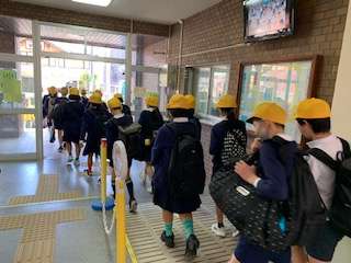 先程出発式を終え、6年生が出発しました。