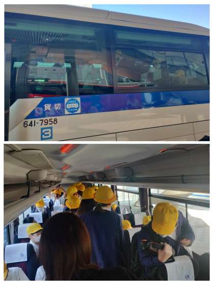 バスに乗って、平和記念公園に向かいます。