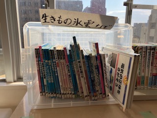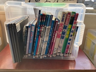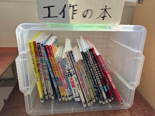 算数(三年)と理科(3.4年)で使用している教室には、標本や化石、収穫した植物などがあるのですが、その他にも淀川図書館から、学んでいる学習の参考になる本をお借りして、毎学期ごとに置いています。図書館司書の方に学習する内容を伝えて、参考になる本を送っていただいています。休憩時間や隙間時間に科学や実験、生き物に関する本が読めるので学習を深めることができます。また、今学期の3年では、最後に学習したことを活かしておもちゃを作るのでおもちゃ作りの参考になる工作の本も届きました。