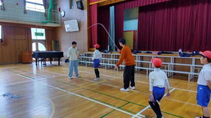なわとびでの決めポーズやダブルダッチなど初めて取り組む技に一生懸命でした。