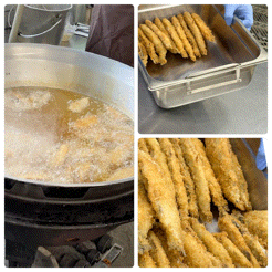 今日は、いわしをフライにしています。骨ごと食べることができるので、骨や歯をじょうぶにするカルシウムもたくさんとることができます。