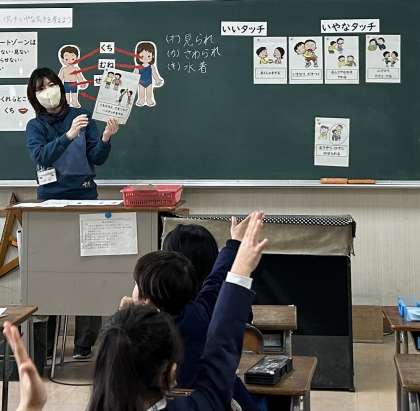 保健室の先生のご指導のもと、「いいタッチいやなタッチを考えよう」の学習に取り組んでいます。プライベートゾーンの大切さやお互いを思いやる気持ちについて学んでいます。