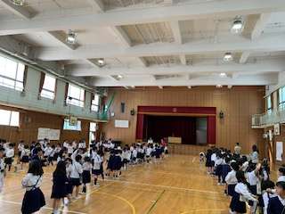 班ごとに学校の様々な場所を回って、仲良くクイズに答えていました。