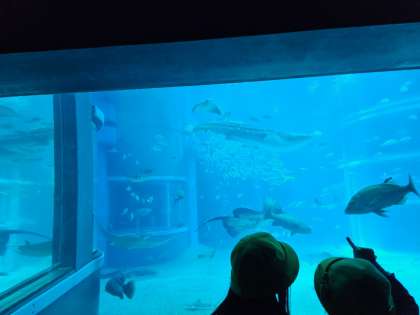 ジンベイザメの大きさにビックリ!水槽釘付けの子どもたちでした。
