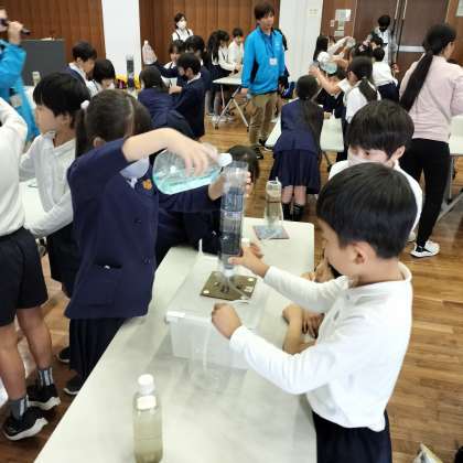 見学の後は水をきれいにするしくみについて実験しながら学習しました。