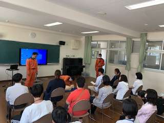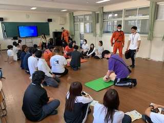 人命救助のためのノウハウや胸骨圧迫、AEDの使い方について教えていただきました。
