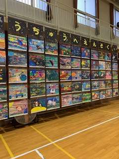 今年の2年生は、絵の具をつかって「うちゅうへえんそく」です。