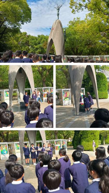 全校児童で折った折り鶴と、地域の皆様からお預かりした折り鶴を捧げました。