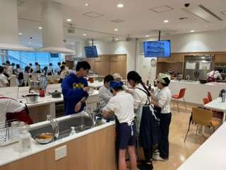 片付けも油を拭き取ってから洗ったり、節水を意識したりしながら協力して取り組みます。