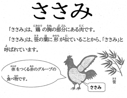 今日の献立は、ケチャップ煮、ささみと野菜のソテー、りんご、おさつパン、牛乳です。