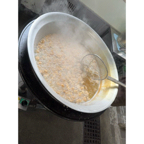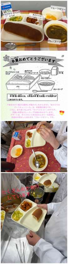 今日の献立は、あげどりのバーベキューソース、カレースープ、キャベツとコーンのサラダ、フルーツゼリー、黒糖パン、牛乳です。