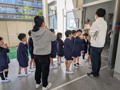 1年生にとって、初めての給食ですが、それ以外の学年の給食係さんたちの手際のよいことに驚きました。先生の後に並んでスピーディーに片づけていました。