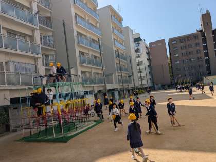 短い休み時間にもたくさんの子どもたちが校庭に出てきます。