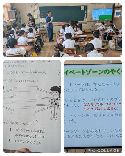 ふざけてプライベートゾーンを触ることはだめです。触られたら嫌だと言います。友達が嫌がっていて、困っていたら助けてあげます。先生に伝えます。身体の大切な場所について知りました。