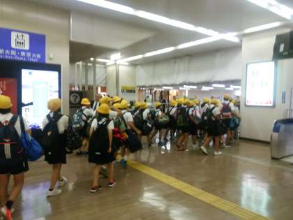 広島駅につきました。全員、元気です。今からバスに乗り、平和公園に向かいます。