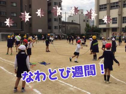1時間目と3時間目の後の10分休みに運動委員がなわとびを教えてくれます。みどりのたすきをかけた運動委員に低学年は集まっていって、なわとびのコツを教わっていました。中には大縄を回してくれる運動委員もいて、色々な学年が混ざって大縄を楽しんでいました。今週の天気予報は晴れの日が多いそうです。ぜひこの機会に外に出て、なわとびを楽しんでほしいと思います。