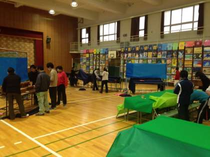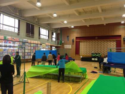 どのように展示すれば作品が映えるか、放課後に教職員が集まって相談しながら土台を準備しました。