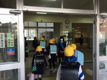 期間中の朝は代表委員の子ども達が玄関に立ち、大きな声で挨拶する姿がみられます。他の児童もその元気につられて大きな声で挨拶しています。