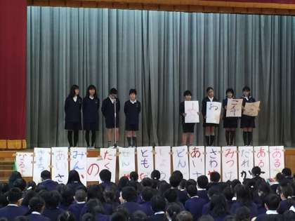 本校では1月11日(水)から土曜日まであいさつ週間です。12日(木)の朝の児童集会ではあいさつ週間の紹介もありました。