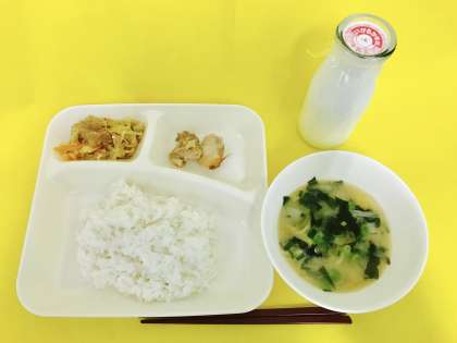 【鶏肉のゆず塩焼き、みそ汁、切り干しだいこんのいため煮、ごはん、牛乳】