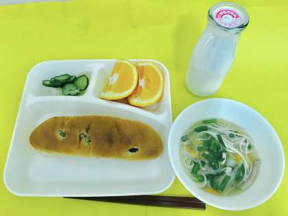 【チャンポン、ピリ辛あえ、いよかん、レーズンパン、牛乳】
