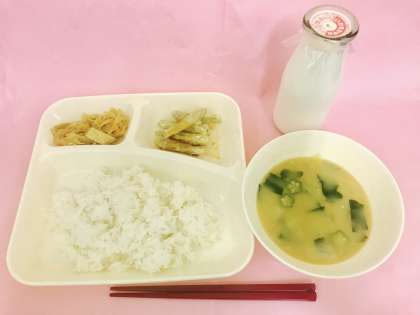 【いわしてんぷら、みそ汁、切り干しだいこんのいため煮、ごはん、牛乳】