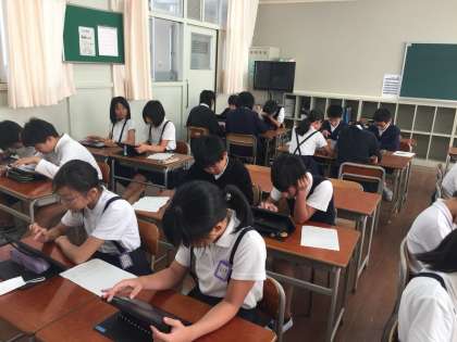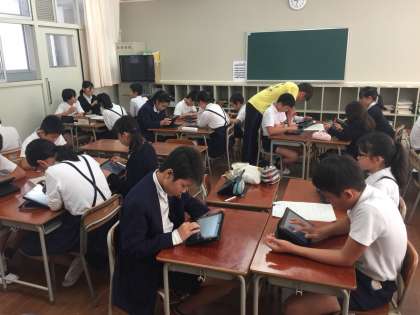 5日(木)に6年生は、タブレットを活用して平和学習を行いました。自分たちで戦争について調べ、資料を作成する学習ですが、日頃から使い慣れている子もいて、サクサクと資料を作成する子や、熱心に戦争について調べる子など、一生懸命に取り組んでいました。もうすぐ迎える修学旅行に向けて、タブレットを活用した とても有意義な平和学習ができました。