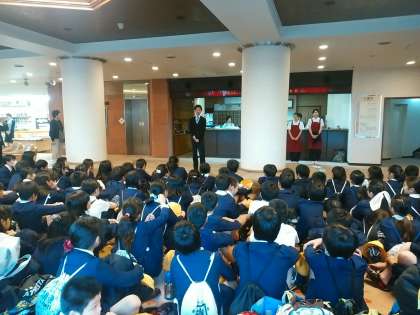 閉舎式に立派な態度で参加しました。今から厳島神社、水族館、表参道商店街と、今日の活動に出発です。