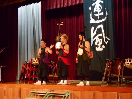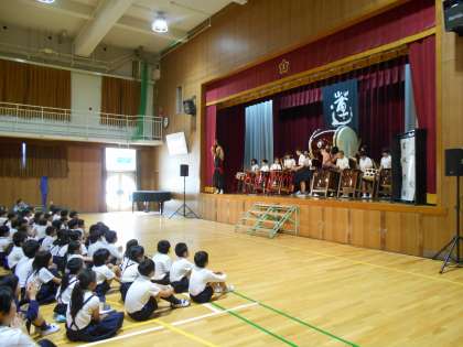 「蓮風」さんは「命の大切さ」をテーマに活動をされています。鑑賞会の後半では和楽器の紹介コーナーがあり、太鼓や三味線の素材についてわかりやすく教えてくださいました。「日本の伝統楽器は、生き物の命を大切にしようという気持ちが込められています。」と、子ども達にメッセージを送ってくださいました。
