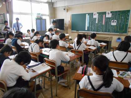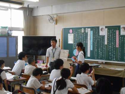 昨日の5時間目、大阪市の新任教員を対象とした道徳教育研修会が、宮原小学校で行われました。6年3組と5年2組で行われた道徳の授業に入り、新任教員のみなさんは研修をしました。