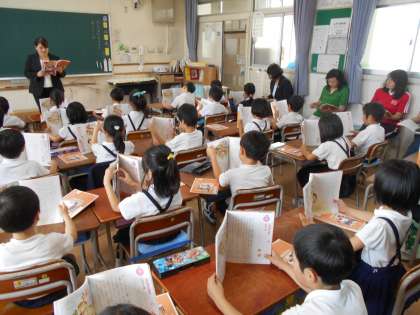 2年2組で、道徳科の研究授業を行いました。教科書から「わりこみ」という教材を選び、善悪の判断について学ぶ授業です。