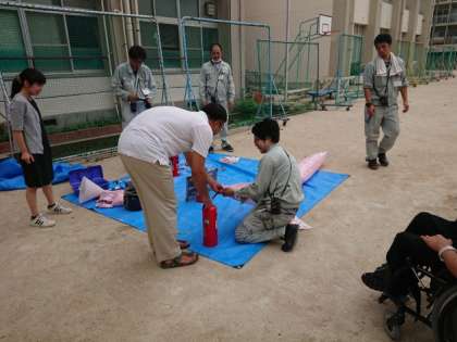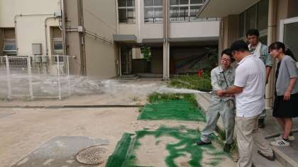 8月10日、消防設備点検がありました。そのなかで、消火器の噴霧、放水の仕方なども職員も参加して行いました。設備は大丈夫です。