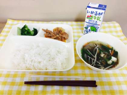 【豚肉のコチジャンいため,もずくスープ,ブロッコリーナムル風あえもの】