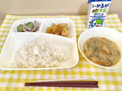 今日の献立は,平成29年 学校給食献立コンクールで,優秀作品に選ばれた作品をもとにした献立です!!小学生の児童が考えたメニューです。献立のねらいは「寒い冬に体があたたまり,海藻や野菜をおいしくとれるようにしています。さけ,もずく,れんこんなどを使っています。」となっています!味や食感に工夫があって,美味しいメニューでした!こども達も「おかわりしたよー♪」「全部,食べたよー!」と教えてくれました!!